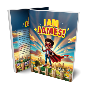 This book introduces you to James, a young boy that loves to wear his superhero cape, pretending to fight off villains, and use his superpowers to save the day by helping others. James has difficulty expressing himself, feels misunderstood, and desires to make friends that will embrace his uniqueness. He soon discovers the real heroic power does not exist in a superhero cape or super strength, but in the extraordinary gift of his own words.